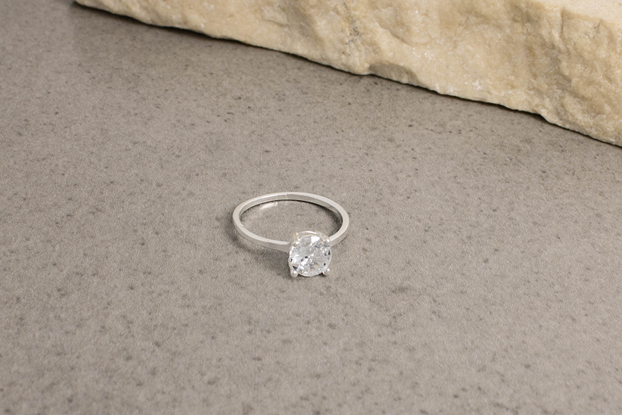 ANEL BANHADO EM PRATA LEVE, SOLITÁRIO 6mm, LINHA TRADICIONAL
