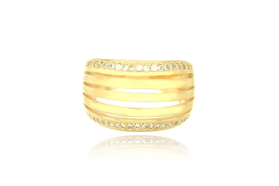 ANEL BANHADO EM OURO, COM ZIRCÔNIAS, 19,50mm LARGURA