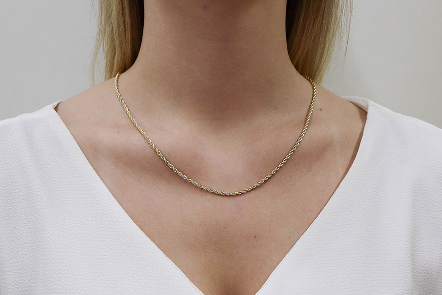 CORRENTE BANHADA EM OURO, CORDA 2,50mm, 45cm COMPRIMENTO, EXTENSOR 5cm COMPRIMENTO E PESO 8,70g