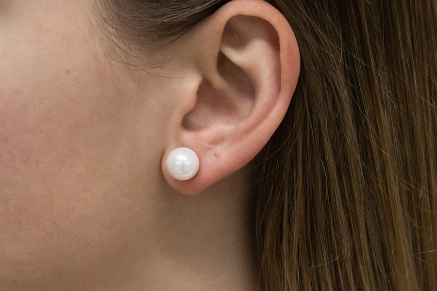 BRINCO EM PRATA, HASTE CRAVEJADA E PÉROLA 8,30mm DIÂMETRO