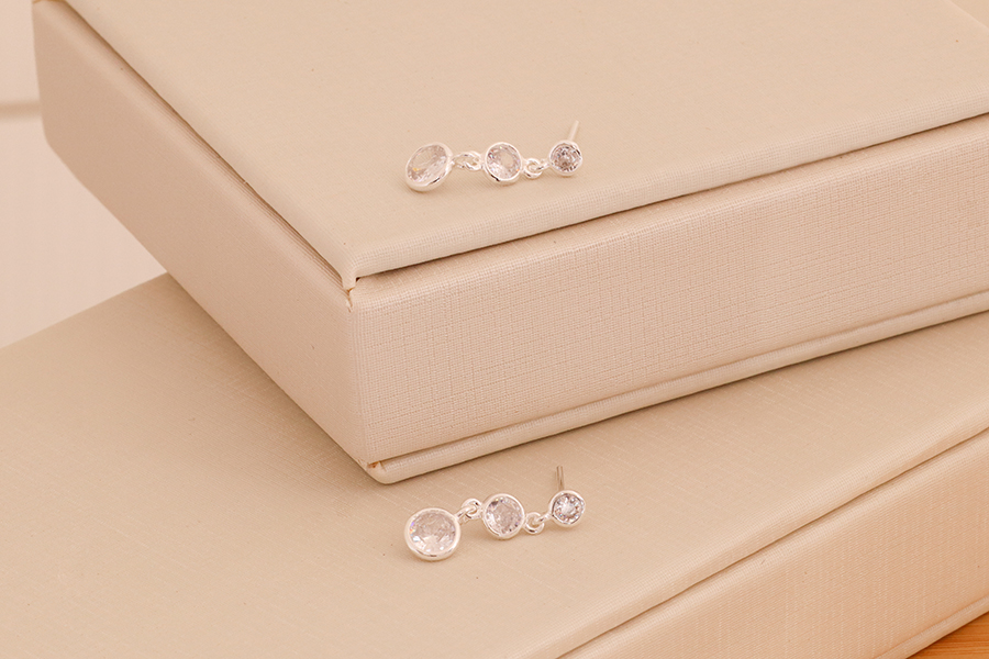 BRINCO BANHADO EM RÓDIO BRANCO, PONTO DE LUZ 3mm, CRAVAÇÃO INGLESA