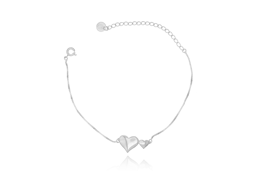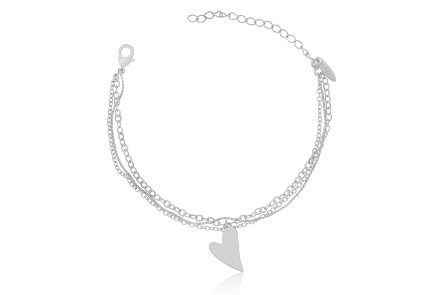 PULSEIRA BANHADA EM PRATA LEVE, INFANTIL, 13cm COMPRIMENTO, ELO VENEZIANA LONGA 1,50mm LARGURA, 3 FIOS, EXTENSOR 3cm COMPRIMENTO, PONTO DE LUZ 3,50mm E CORAÇÃO 8mm LARGURA