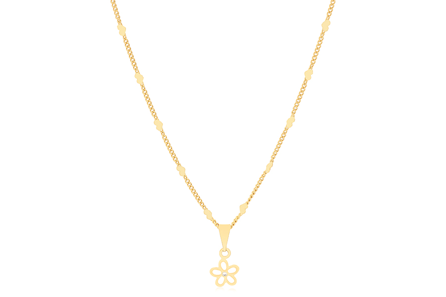 GARGANTILHA BANHADA EM OURO, ELO VENEZIANA 0,80mm, 40cm COMPRIMENTO, EXTENSOR 5cm COMPRIMENTO E TREVO 9mm LARGURA, COLEÇÃO ÍCONES