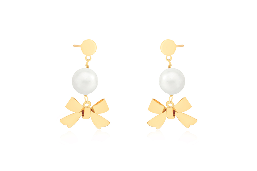 BRINCO BANHADO EM OURO, PÉROLA CORAÇÃO 6,50mm ALTURA