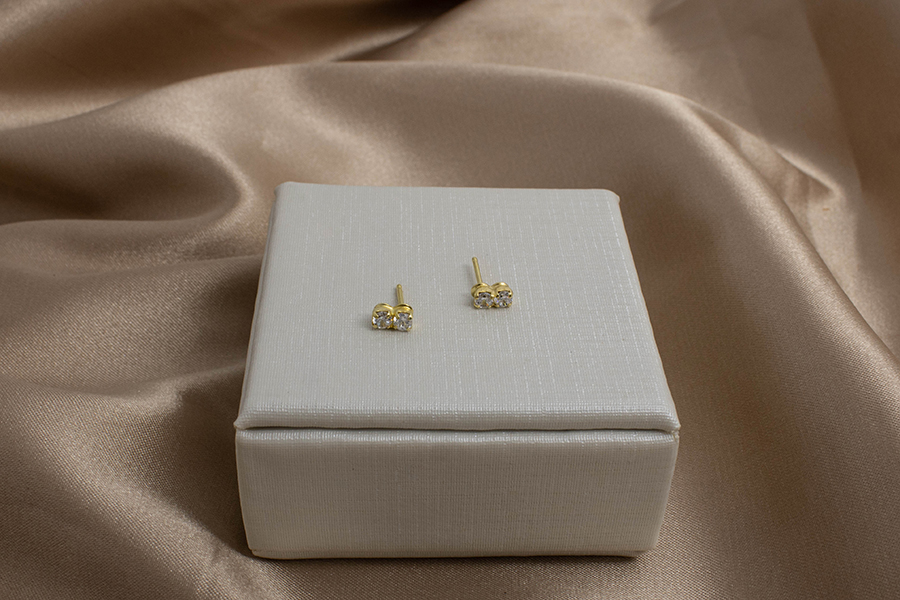 BRINCO BANHADO EM OURO, CORAÇÃO ZIRCÔNIA 4X4mm, PARA QUALQUER COR DE PEDRA