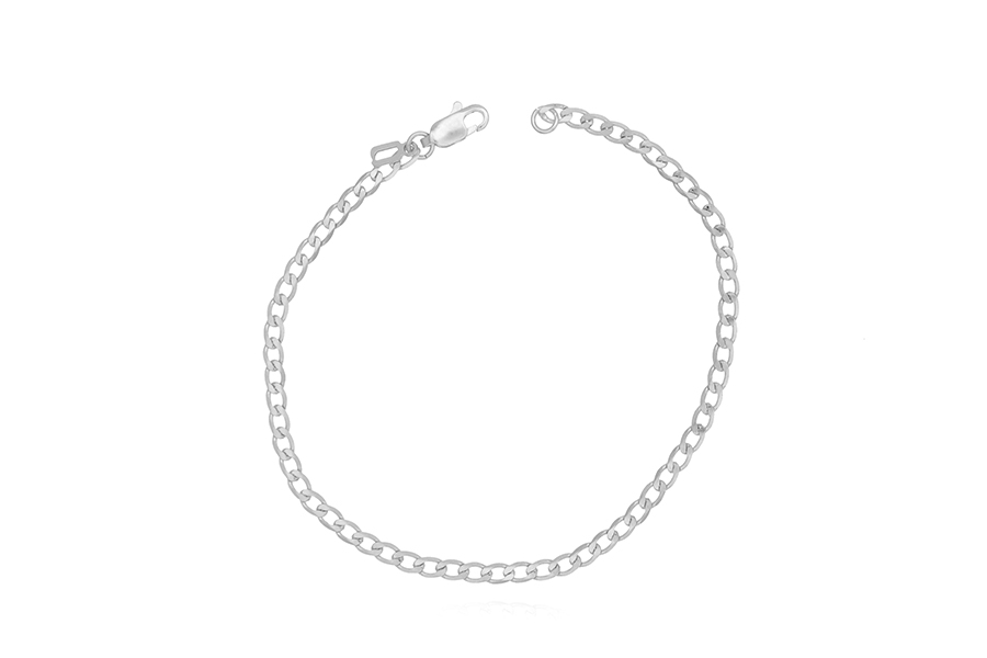 PULSEIRA BANHADA EM PRATA LEVE, ELO OVAL 1,20mm LARGURA, 16cm COMPRIMENTO, EXTENSOR 5cm COMPRIMENTO E MENINO 9mm DIÂMETRO