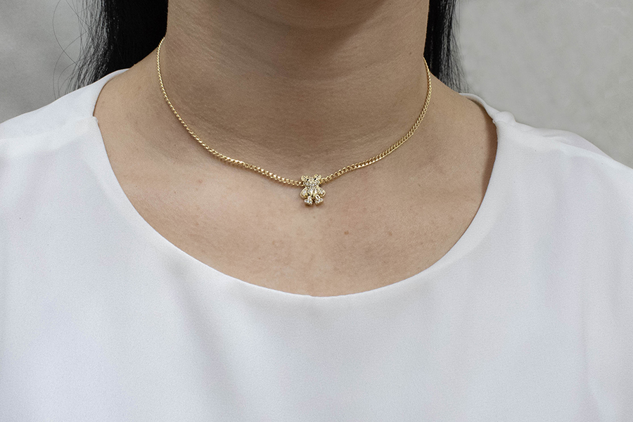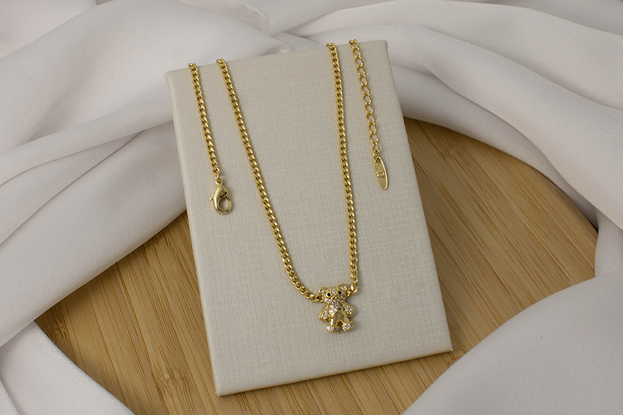 GARGANTILHA BANHADA EM OURO, CRISTAL CORAÇÃO 15mm LARGURA E CORRENTE ELO 4mm LARGURA, 40cm COMPRIMENTO