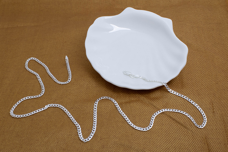 CORRENTE EM PRATA, ELO CANUTILHO E ESFERA TRANÇADO E DIAMANTADO, 3,20mm LARGURA E 2,20mm ESPESSURA, 45cm COMPRIMENTO