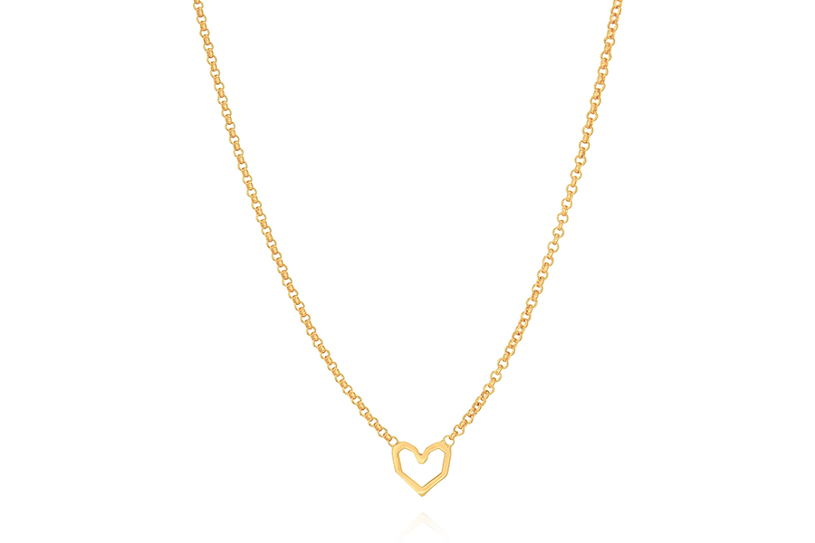 GARGANTILHA BANHADA EM OURO, ELO 1,20mm LARGURA, 40cm COMPRIMENTO E CORAÇÃO 6,50mm LARGURA, PARA QUALQUER COR DE PEDRA
