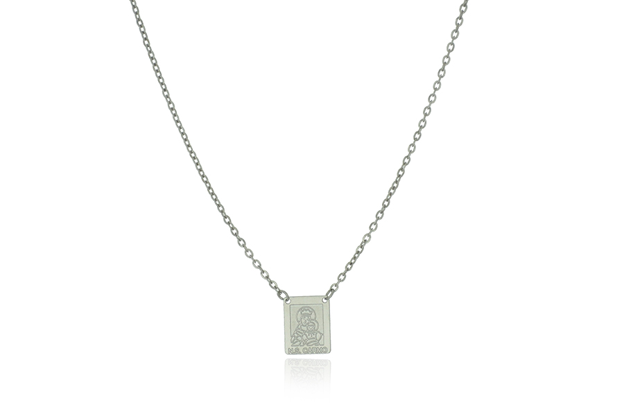 ESCAPULÁRIO EM PRATA, SAGRADO CORAÇÃO DE JESUS E NOSSA SENHORA DO CARMO, ELO GRUMET, 60cm COMPRIMENTO