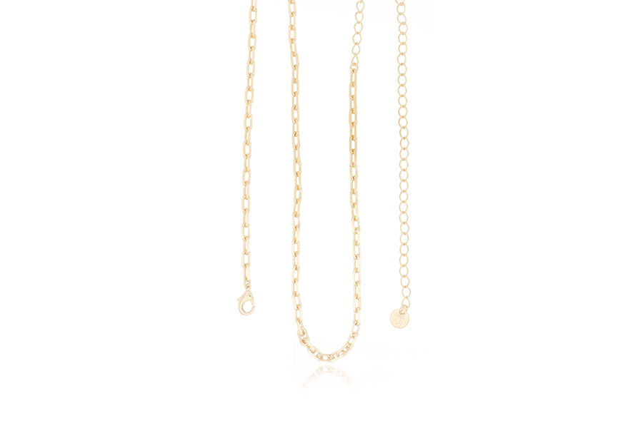 CORRENTE BANHADA EM OURO, ELO PORTUGUÊS 2,50mm, 45cm COMPRIMENTO, EXTENSOR 5cm COMPRIMENTO E PESO 3,80g