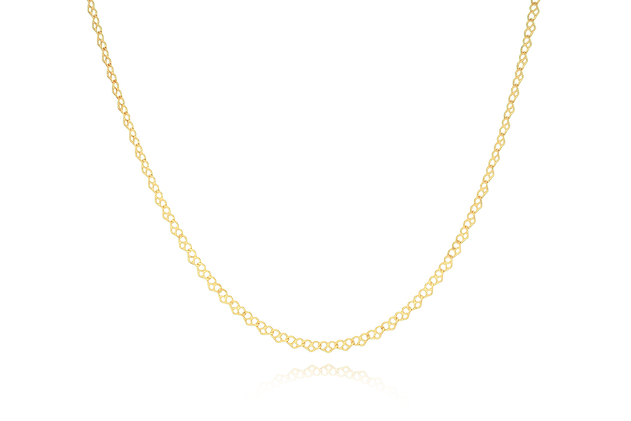 CORRENTE BANHADA EM OURO, ELO CORDA 3mm, 45cm COMPRIMENTO, EXTENSOR 5cm COMPRIMENTO E PESO 12,20g