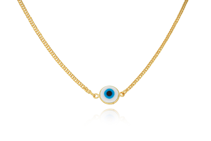 GARGANTILHA BANHADA EM OURO, CRISTAL REDONDO 10mm, VENEZIANA 0,80mm, 40cm COMPRIMENTO E EXTENSOR 5cm COMPRIMENTO