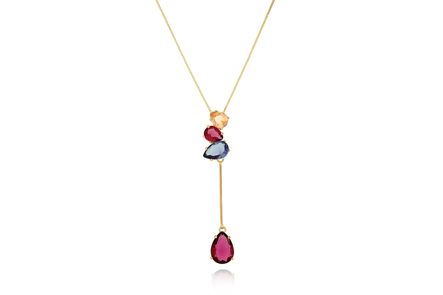 GARGANTILHA BANHADA EM OURO, ELO VENEZIANA 0,80mm, 42cm COMPRIMENTO E ZIRCONIA GOTA 10X7mm, PARA QUALQUER COR DE PEDRA