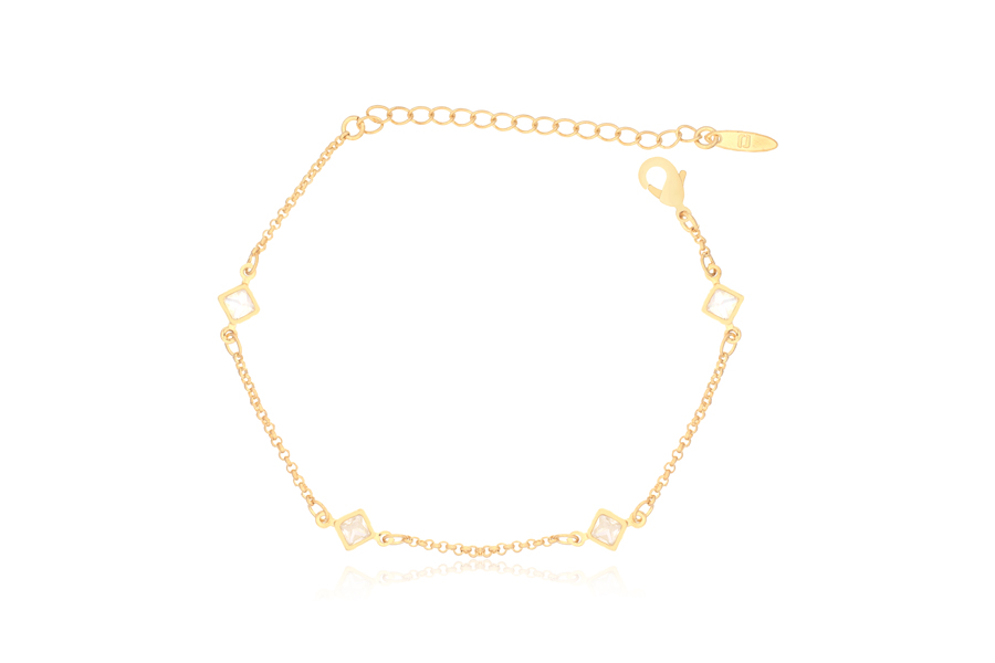 PULSEIRA BANHADA EM OURO, CRISTAL, ELO PORTUGUÊS 7mm DIÂMETRO, 1,90mm ESPESSURA E PINGENTE BONECOS 20mm DIÂMETRO