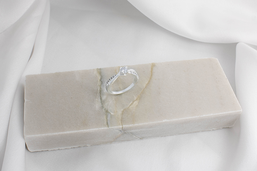 ANEL BANHADO EM RÓDIO BRANCO, SOLITÁRIO 9mm, LINHA TRADICIONAL