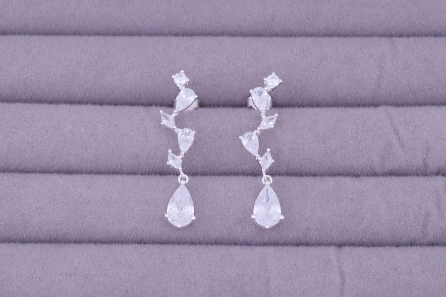 BRINCO EM PRATA, GOTA 6mm ALTURA, COM BANHO DE RÓDIO BRANCO, COLEÇÃO AURA