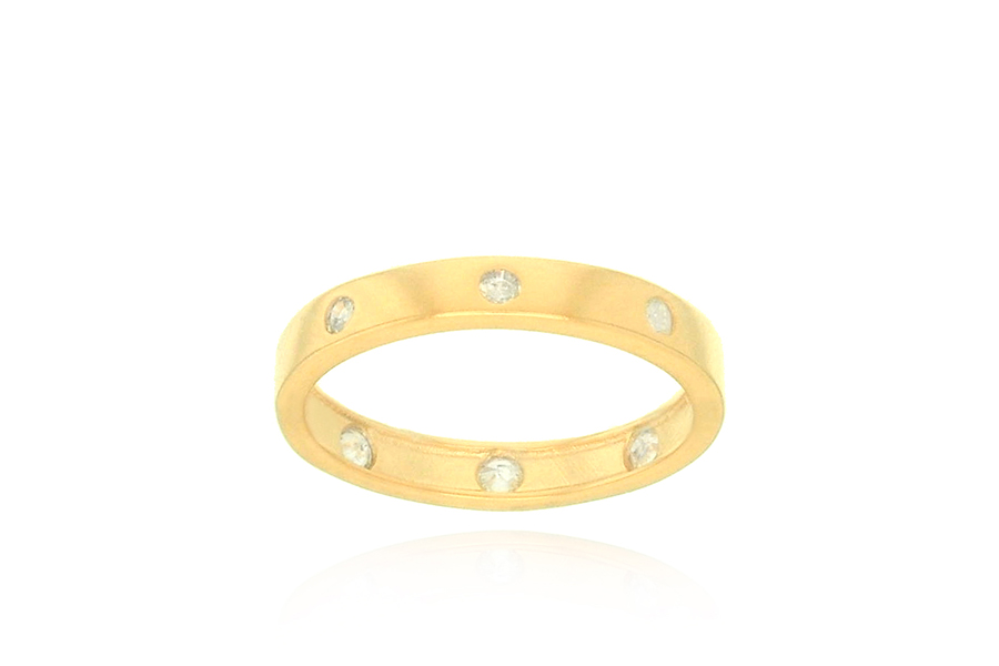 ANEL BANHADO EM OURO, ALIANÇA COM 11 ZIRCÔNIAS 4,50mm