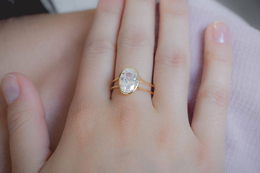 ANEL BANHADO EM OURO, SOLITÁRIO 8mm, COM 173 ZIRCÔNIAS